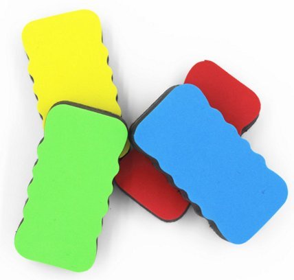 Package includes 4 pack Magnetic Foam Eraser - Yellow, Blue, Green, Red
