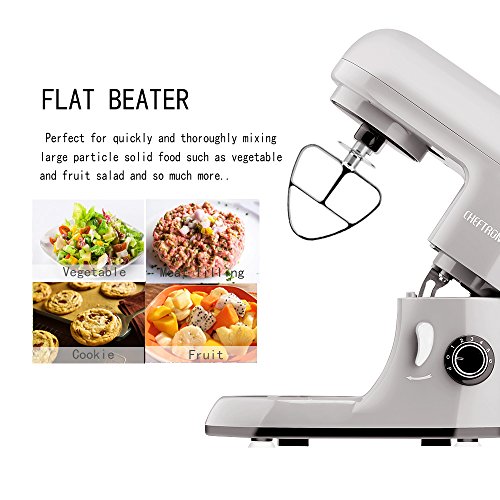 【FOUR ATTACHMENT SET】 Comes with Wire whip, Dough hook, Flat beater three mixing accessories and one piece of splash guard, the splash guard helps you add ingredients without making a mess