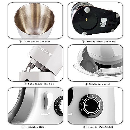 【350W POWERFUL MOTOR & SIX SPEED CONTROL】120V 350W high-performance motor and durable plastic housing. Precise 6 speed control lets you from a slow stir to a fast mix, prefect suitable for different ingredients. Easy to use and clean.
