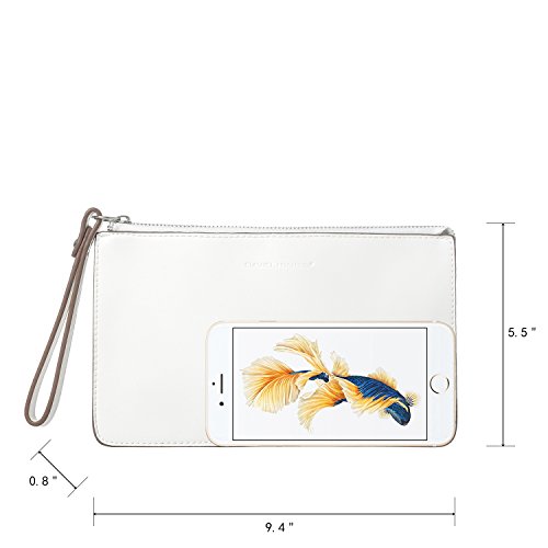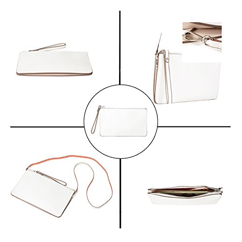 Product Description White Wallet with Strap Wristlet Handbags Clutch for Woman DAVIDJONES a fashion accessories brand from Paris since 1987.We are committed to provide our customer trendy and stylish products at reasonable price.You cannot go wrong Commit to the simple yet tasteful look of this wristlet .This is a perfect purse-wallet combination,lightweight and roomy for an ever-ready accessory.9 bright candy colors make you want to buy one in each color.It is ideal for everyday use and goes especially well with a night out.Perfect for the dating, shopping, party, traveling, business etc, great Birthday Gift, Christmas Gift for women, girls. Technical Specification Material:100% Synthetic(PU Leather/Genuine Leather) Lightweight and extremely durable material; Soft touch just like real leather purse; No noticeable chemical smell or any other odor; Color: 9 colors for selection and can match various styles of dresses and shoes From the classic color to the bright candy color all is due to make you look more vigorous and brilliant! Please note: The handbag color may vary slightly from the online image due to monitor color settings. Style:shoulder bag,cross-body bag,wristlet,wallet purse,cards holder,envelope handbag Shipping weight:?0.55 pounds Service garantee:?Accept returns and exchanges for quality reason Package: 1 crossbody wristlet purse -Dimensions(inches): 9.4"(L)x0.8"(W) x5.5"(H) -Long shoulder strap(inches):45" -Weight(pounds):0.44lbs Product features Zipper closure 1 wrist strap and 1 removable cross-body strap 2 compartments inside 0