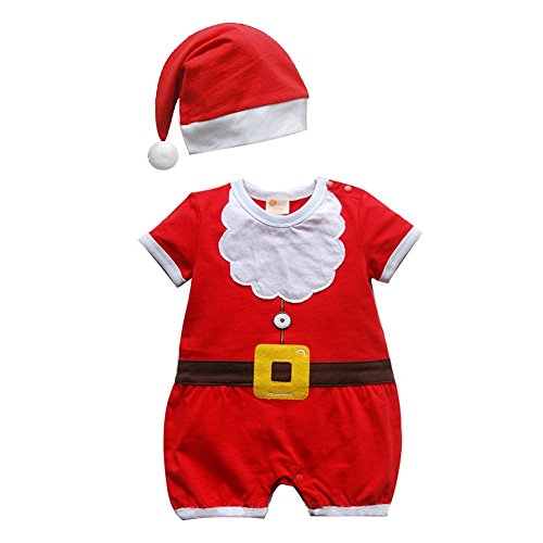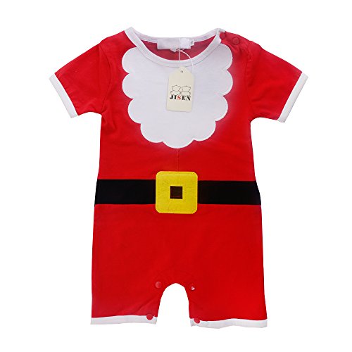 -. Brand : JISEN -. Department : unisex-baby -. Feature : 100% Cotton,Machine Wash / Choice of sizes: 80/6-12M, 90/12-18M, 95/18-24M / ROMPER with bodysuits featuring snap bot + HAT Outfit ,Special for Summer Dressing / Red and white romper with black and orange beltm,Cute Sweet, Adorable Designs / Well Packing with JISEN brand label -. ProductGroup : Apparel -. ProductTypeName : BABY_COSTUME -. Title : JISEN® Unisex-Baby Christmas Santa Claus Costume Short Sleeve Infant Onesies