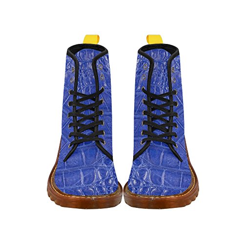 (D-Story)/Women's/Boots/DIRECT FROM USA/D-Story Shoes Bright Blue Crocodile Skin Lace Up Martin Boots For Women