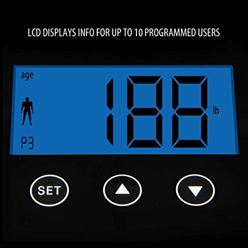 - Feature : Scale measures weight, body fat, hydration, muscle & bone percentage / Allows you to store up to 10 people's health information, giving you a great way to keep track of your family's health / Tempered glass surface evenly distributes weight, ensuring that you'll receive accurate readings / Free smartphone app charts your fitness progress, syncs data from the scale, and monitors your health / Works with Apple iPhone & iPad and Android smartphones & tablets!