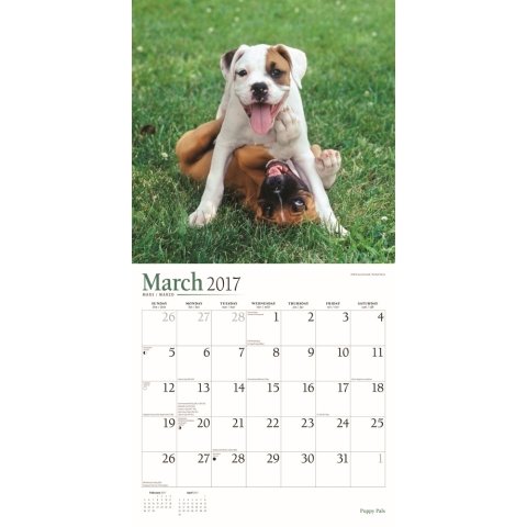 -. Binding : Office Product -. Brand : 2017 Calendars -. EAN : 0705911297258 -. Feature : 2017 Calendar featuring beautiful images for every month of the year. / Includes Holidays and Observances. / Keep your appointments and Birthdays organized in one place! / Perfect for office spaces, bedrooms, classrooms and more! / Makes a great gift for friends and family! -. Label : Brown Trout -. Manufacturer : Brown Trout -. MPN : 83111 -. PackageQuantity : 1 -. PartNumber : 83111 -. ProductGroup : Office Product -. ProductTypeName : OFFICE_PRODUCTS -. Publisher : Brown Trout -. Studio : Brown Trout -. Title : 2017 Puppy Pals Calendar - 12 x 12 Wall Calendar -. UPC : 705911297258