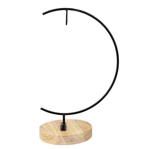 Tinksky Iron Hanging Plant Stand Hook Holder Wooden Base Decorative Plant Hanger for Landscaping Home Garden Decoration