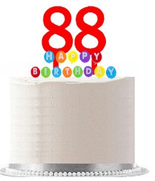 Item#088WCD - Happy 88th Birthday Party Red Cake Topper & Rainbow Candle Stand Elegant Cake Decoration Topper Kit