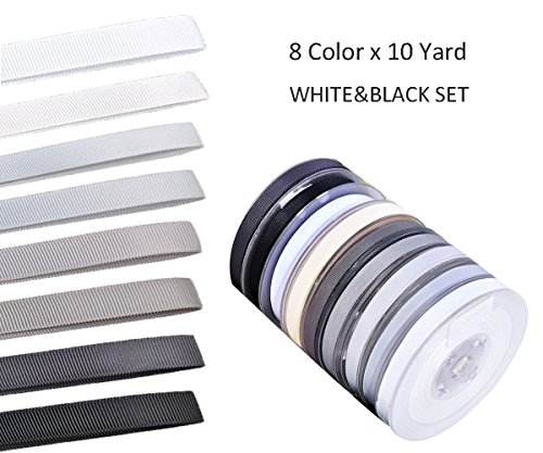 Ombre Grosgrain Ribbon Pack Assortment, 3/8-Inch, 8 Colors by 10-Yard (White)