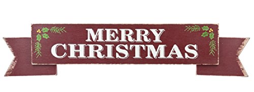 Merry Christmas Holly Berry Red Banner 30 x 6 Inch Wood Holiday Wall Plaque