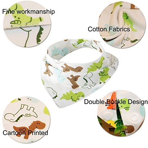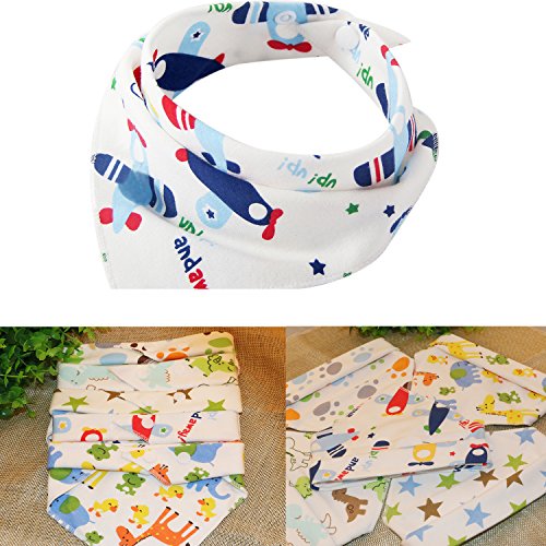 *** STYLISH DESIGNS *** The bibs are triangular in shape,there is a plastic snap on one end with two plastic snaps on the other end to provide an adjustable fit which can grow with your baby.The unisex design is good for boys and girls,these would make a great addition to your collection or as a gift to a new mom!