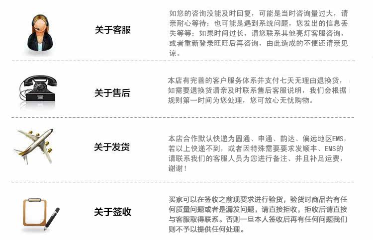 注意事项:○首先拍下需要购买的商品 ○汇好后旺旺联系客服 或者短信告知汇款银行,购买货品以及旺旺名就可以了哦 |
