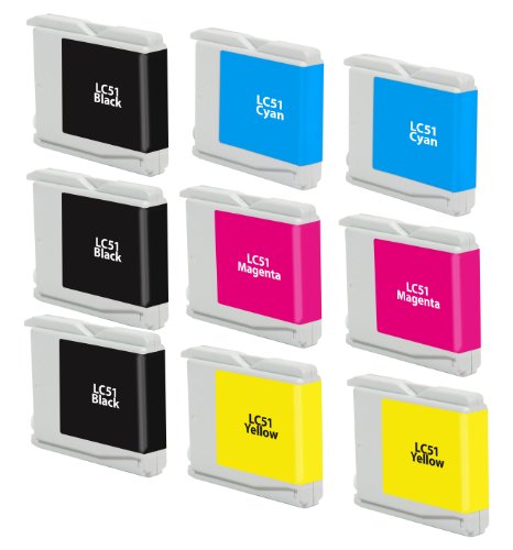 Virtual Outlet 9 Pack Compatible Inkjet Cartridges for Brother LC-51 LC51 LC 51 LC-51XL, LC-51BK LC-51C LC-51M LC-51Y High Yield Compatible with Brother DCP-130C, DCP-330C, DCP-350C, DCP-750CW, FAX-1940CN, MFC-240C, MFC-440CN, MFC-5460CN, MFC-665CW, MFC-5