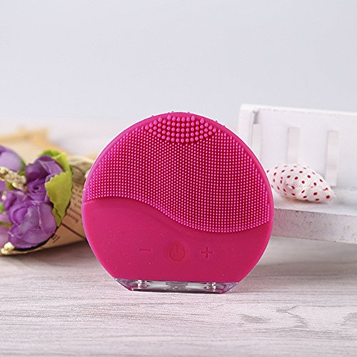 Facial Cleansing Brush and Face Massage,Ultrasonic Silicone Facial Cleansing System for Face Clear Polish and Scrub (ROSE RED)