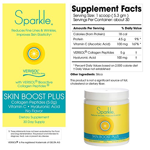 -. Title : Sparkle Skin Boost Plus Verisol Collagen Peptides Protein Powder Vitamin C No Flavor Supplement Drink, 5.6oz