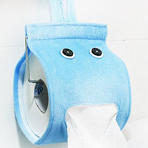Honice Creative Hanging Tissue Holder Paper Holder Dispenser Cover Plush Cloth Toilet Paper Container Box (6 Colors Optional) (Blue)