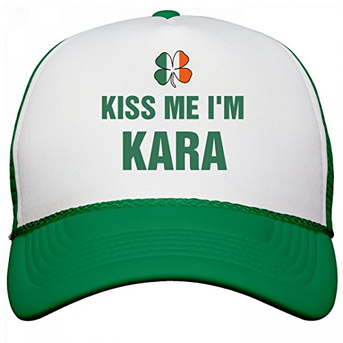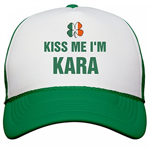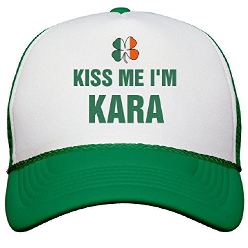 Binding : Apparel Product Description Kiss me I'm Kara. This funny and flirty hat is meant for anyone who is wanting to get lucky on St. Patrick's Day. Everyone's a wee bit Irish when they wear green on March 17th. Get some of that Irish luck and wear this funny trucker hat. This five-panel structured foam snapback from OTTO Caps has the vintage mesh sides and back for excellent ventilation. 0
