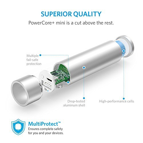 Anker PowerCore+ mini, 3350mAh Lipstick-Sized Portable Charger (3rd Generation, Premium Aluminum Power Bank), One of the Most Compact External Batteries