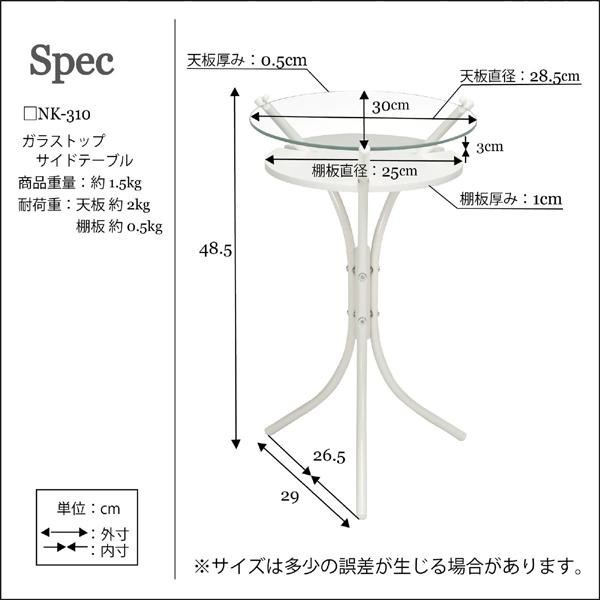 | 仕様 | 組立品 ガラス天板 収納棚付 耐荷重:(約)天板2kg/棚板0.5kg |