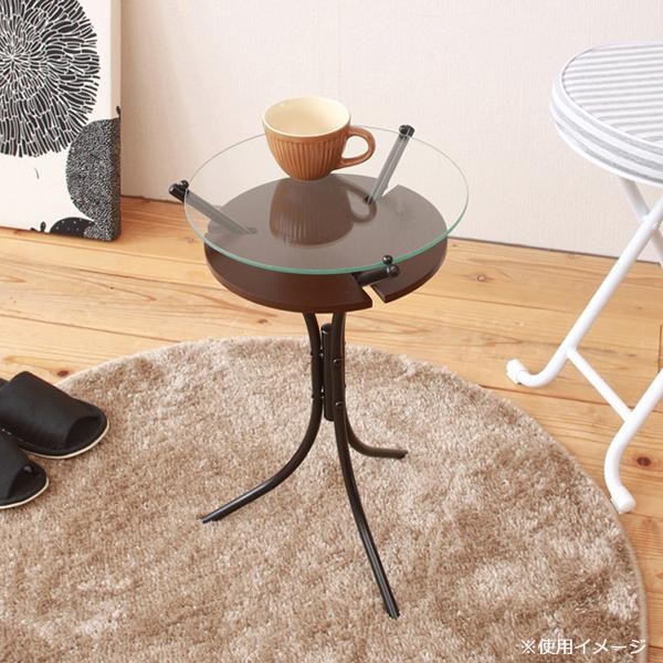 | 必要なものを近くに置ける便利なサイドテーブル。ソファやベッドの横、お部屋の隅に小物置きとしても。収納棚付で天板を広く使えてとても便利!!天板がガラスなので棚に置いたものをディスプレイ収納出来るのも嬉しいポイント♪ |