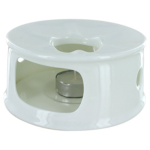 Studio : Berta Hedstrom Publisher : Berta Hedstrom Product Description This elegant teapot warmer will accommodate any of your teapots regardless of material. Made from bone china, this warmer allows for a candle tea light (not included) to sit in the interior compartment with an open window to allow your teapot to stay warm. The base of the pot needs to be 4 inches to fit in the groove, but this tea warmer will accommodate any teapot size. The Bone China Teapot Warmer is dishwasher and microwave safe. Dimensions: 4.9 inches L x 4.9 inches W x 2.6 inches H 0