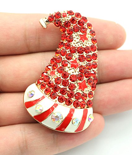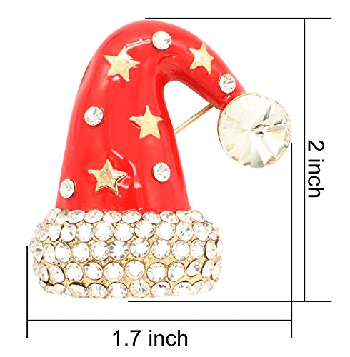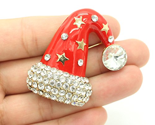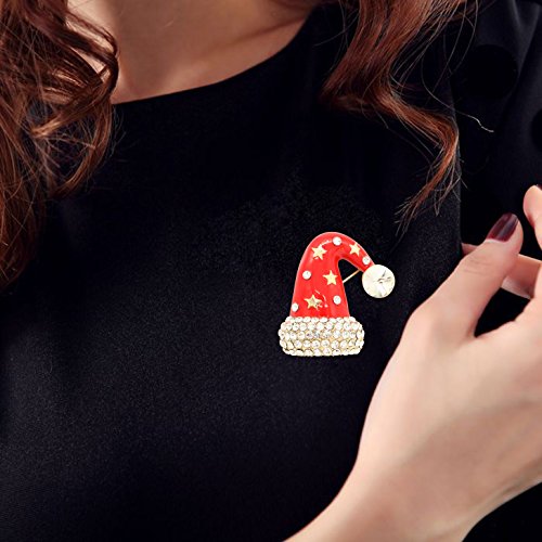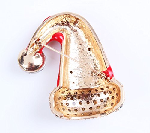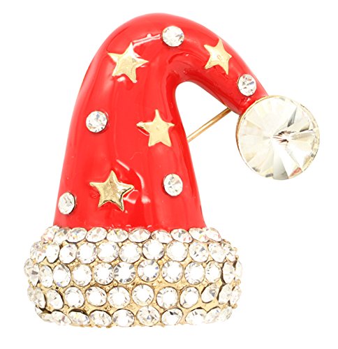 KristLand - Christmas Brooch Pin Alloy With Crystal and Enamel Corsage For Cloth Bag Cute Red Crystal Hat