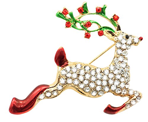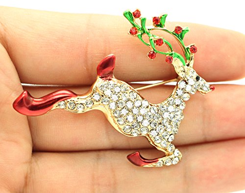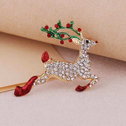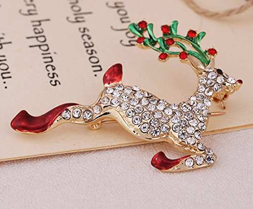 KristLand - Christmas Brooch Pin Alloy With Crystal and Enamel Corsage For Cloth Bag Cute Deer