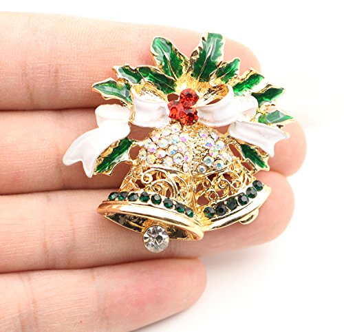 KristLand - Christmas Brooch Pin Alloy With Crystal and Enamel Corsage For Cloth Bag Cute Bell