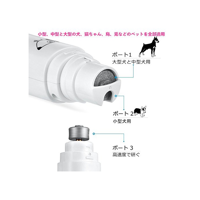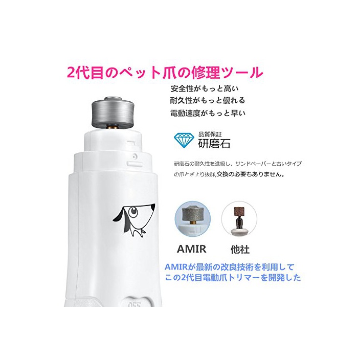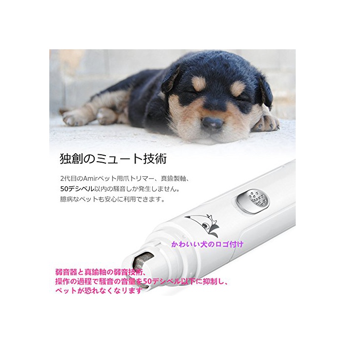 원본상품명:Amir 電動爪トリマ? 充電式 ペット用 ?音なし50デシベル 爪とぎ ネイルヤスリ 爪やすり 爪きり 安全 猫 小型犬 大型犬 中型犬 通用 コ?ド付 ホワイト