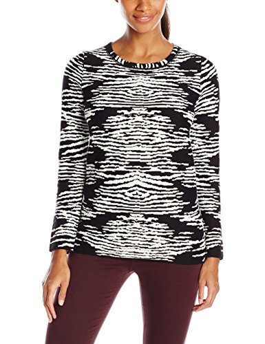 Crew neckline. Eye-catching two-tone print featured throughout. Straight hemline. 100% cotton. Hand wash cold, dry flat. Imported.