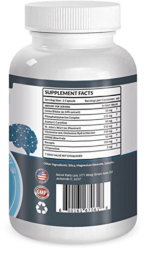 -. Feature : * IMPROVES MEMORY, FOCUS, CLARITY to help you feel better and perform to your finest ability. You will find it easier to solve problems at work, be in a better mood with family, and enjoy every minute of your day. / * CLEARS MENTAL FOG that often holds us back in the morning, after lunch, during work, and when we are tired. Powerfully works to ease stress and the anxiety that goes with it. You can experience happiness more often with less worry. / * PACKED WITH FAMOUS HERBS known for supporting improved brain health and nervous system. We include stronger herbal ingredients like Ginko Biloba, Phosphatidylserine Complex, Acetyl-L Carnitine, St. John's Wart, Glutamine, Bacopin, and more. / * JUST ONE CAPSULE PER DAY quickly goes to work to boost memory and clarity. Gives you more energy with a greater capacity for good feeling. Made in the USA to the highest standards at our GMP Certified facility. / * 100% MONEY BACK GUARANTEE ensures this will quickly become your favorite no-risk purchase. Many people are stocking up with 2 or 3 bottles to continue the impressive benefits for several months. HURRY AND BUY NOW while we have a big supply in stock. This makes a thoughtful gift for birthday, holiday, or anniversary.