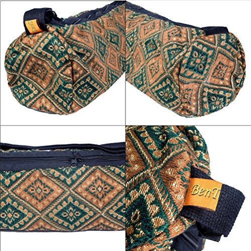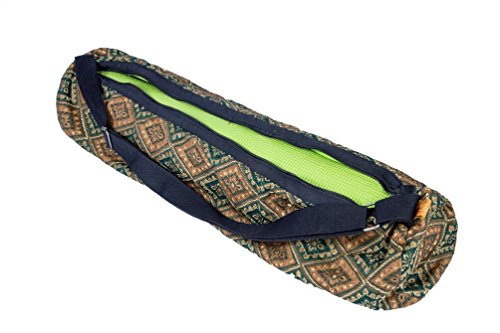 Studio : BenThai Products Publisher : BenThai Products Binding : Misc. Product Description Our versatile Yoga Mat bag is comfortable and handy to use for easy tote of your mat to and from class. The bag is made to fit universal sized mats, made with native Ikat fabric native to North of Thailand and comes in multiple colors and patterns. Fully lined with natural weave black cotton and an adjustable carry strap for shoulder or crossbody carry. This design features an easy open double action zipper and a zippered inside pocket for your miscellaneous items. Size: 28" long, 5.5" diameter ends Adjustable Strap: Approx up-to 47" 8"x8" inside zippered pocket 0