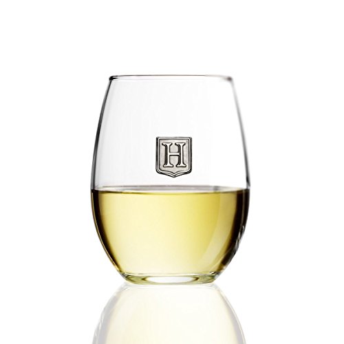 Fine Occasion Personalized Stemless Wine Glass with Letter Crest (H, 21 oz)
