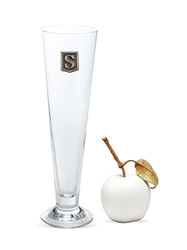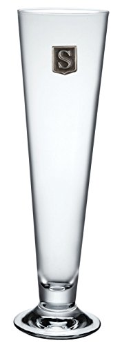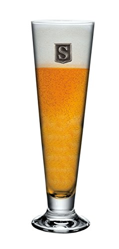 Personalized Footed Pilsner Beer Glass – Monogram Initial Pewter Engraved Crest - Novelty for Weddings, Birthdays or any Special Occasions – Pick Your Letter (S, 18OZ)