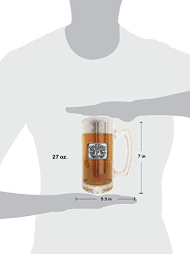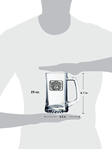 Fine Occasion Glass Beer Stein Mug Monogram Initial Pewter Engraved Crest with Letter J, 27 oz