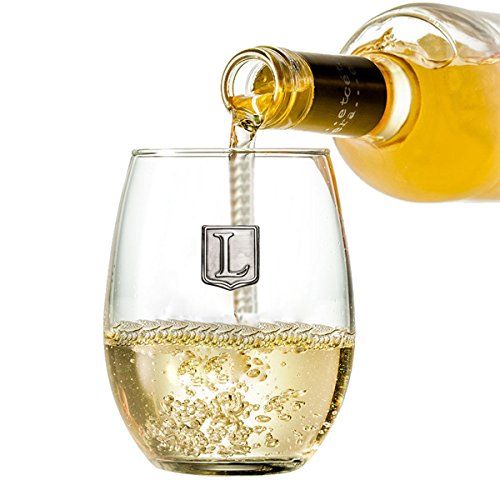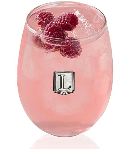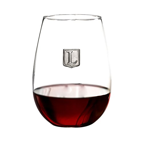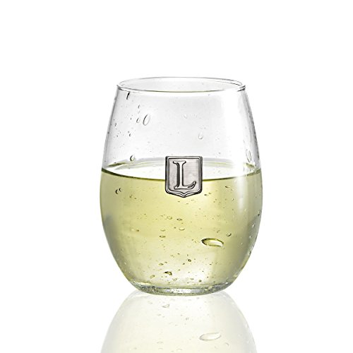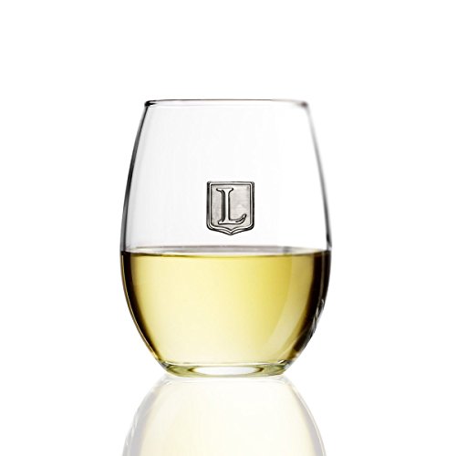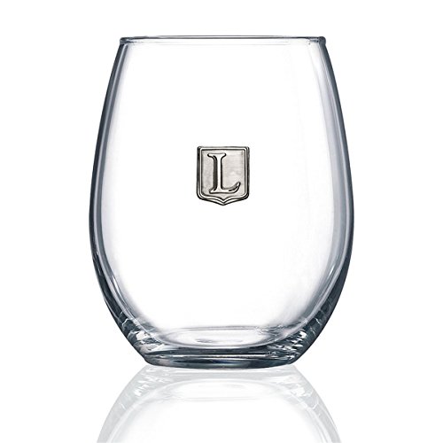 Fine Occasion Personalized Stemless Wine Glass with Letter Crest (L, 21 oz)