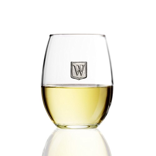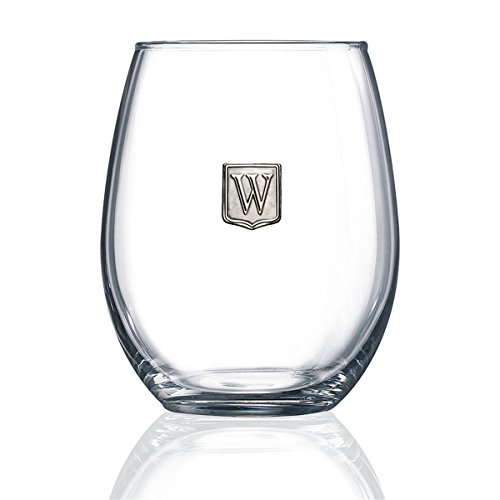 Fine Occasion Personalized Stemless Wine Glass with Letter Crest (W, 21 Oz.)