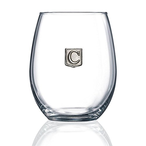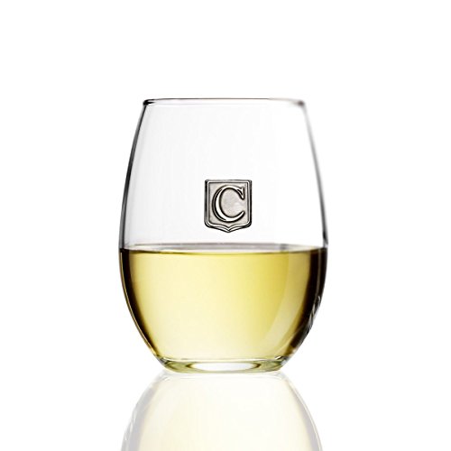 Fine Occasion Personalized Stemless Wine Glass with Letter Crest (C, 21 oz)