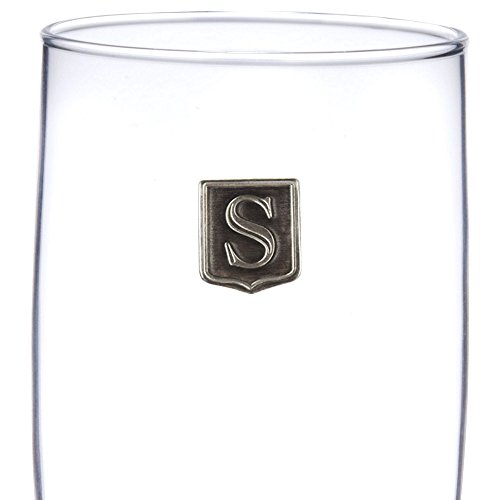 Fine Occasion Glass Beer Pub Mug Monogram Initial Pewter Engraved Crest with Letter S, 25 oz