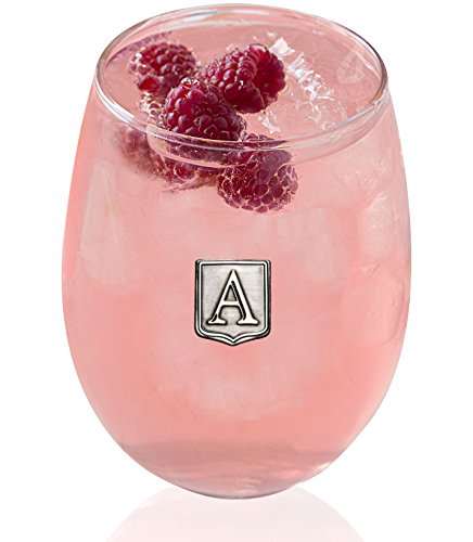 Fine Occasion Personalized Stemless Wine Glass with Letter Crest (A, 15 oz)