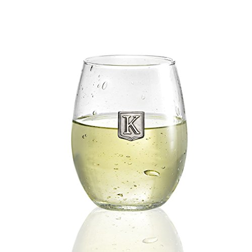 Fine Occasion Personalized Stemless Wine Glass with Letter Crest (K, 21 oz)