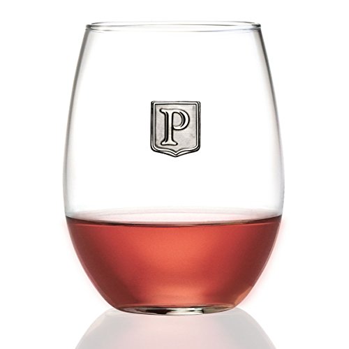 Fine Occasion Personalized Stemless Wine Glass with Letter Crest (P, 21 oz)