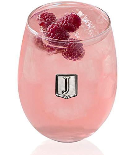 Fine Occasion Personalized Stemless Wine Glass with Letter Crest (J, 21 oz)