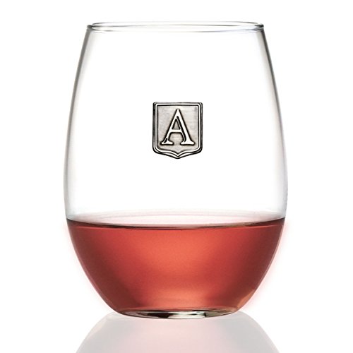 Fine Occasion Personalized Stemless Wine Glass with Letter Crest (A, 21 oz)