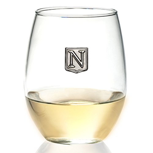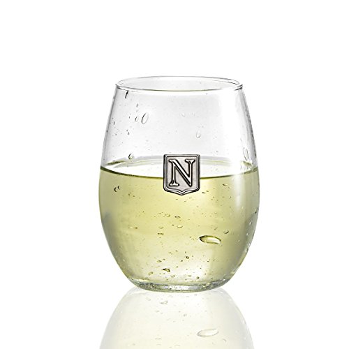 Fine Occasion Personalized Stemless Wine Glass with Letter Crest (N, 21 oz)