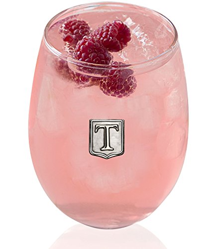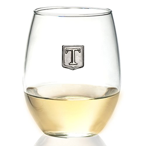 Fine Occasion Personalized Stemless Wine Glass with Letter Crest (T, 21 oz)