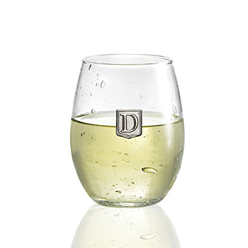 Fine Occasion Personalized Stemless Wine Glass with Letter Crest (D, 21 oz)