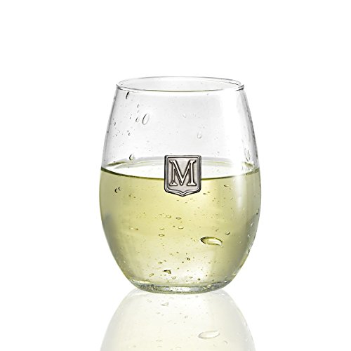 Fine Occasion Personalized Stemless Wine Glass with Letter Crest (M, 21 oz)