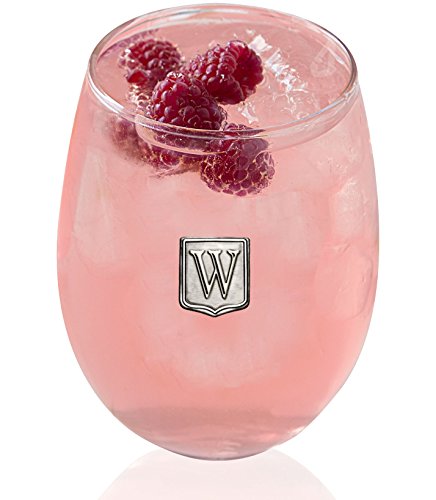 Fine Occasion Personalized Stemless Wine Glass with Letter Crest (W, 15 oz)