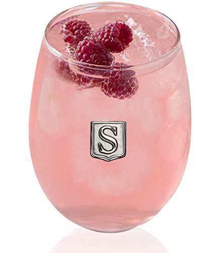 Fine Occasion Personalized Stemless Wine Glass with Letter Crest (S, 21 oz)