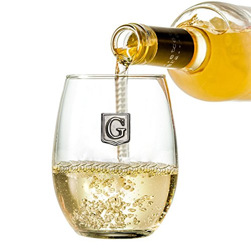 Fine Occasion Personalized Stemless Wine Glass with Letter Crest (G, 21 oz)