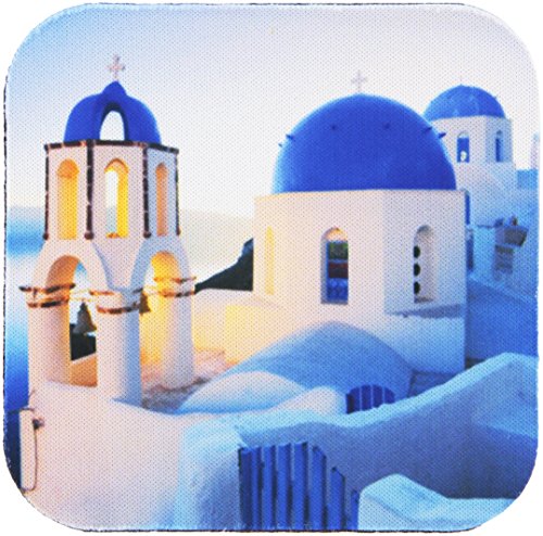 3dRose cst_149764_1 Greece, Santorini, Church Domes, Greek Architecture Soft Coasters, Set of 4